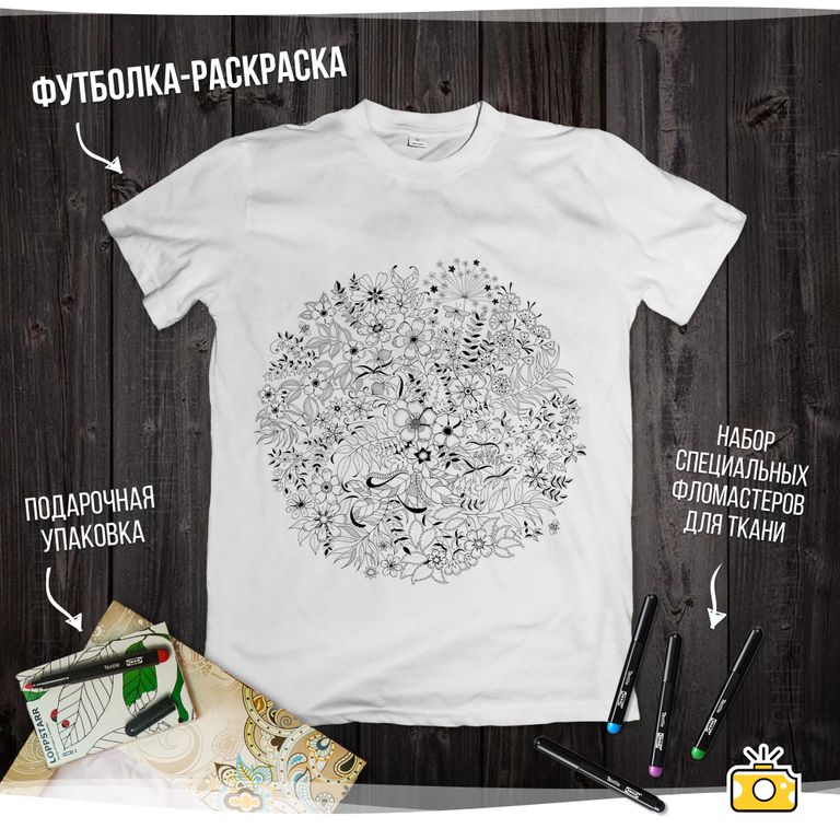 Уникальное подарок который понравится как детям так и вхрослым - это раскраска футболка. Подарок для творческих людей с помощью которого они смогут создать поистине уникальную футболку со своим дизайном! К тому же современные раскраски для взрослых уже окрестили новой арт-терапией. Симпатичные цветы, девушки, перья, узоры – даже черно-белые рисунки уже смотрятся привлекательно. Но творчество дает возможность проникнуть в свой внутренний мир. Выражая себя, человек расслабляется, раскрывается и хотя бы ненадолго оказывается в гармонии. Так работают раскраски арт-терапия.