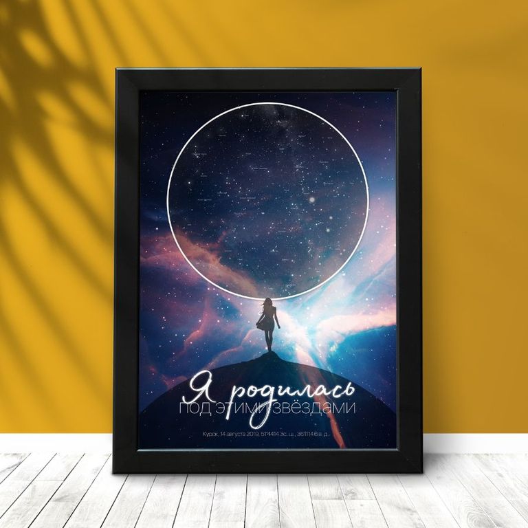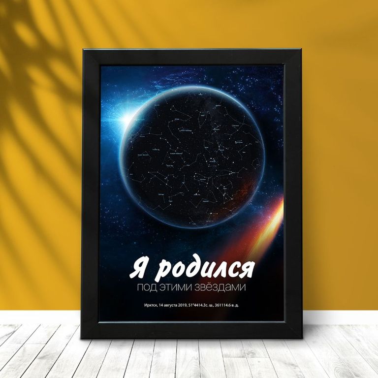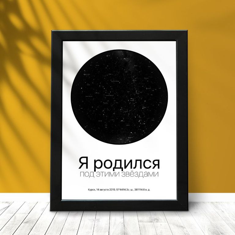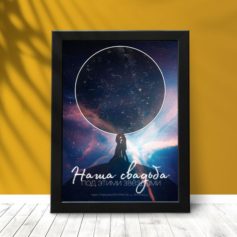 В астрологии считает, что каждый момент неповторим. Расположение небесных тел в момент рождения, заключения брака, уникально и влияет на будущее людей. Благодаря карте звездного неба вы словно останавливаете важный момент в жизни и сохраняете его в рамке. Такой подарок отличается оригинальностью, нестандартным подходом к презентам, романтичностью.